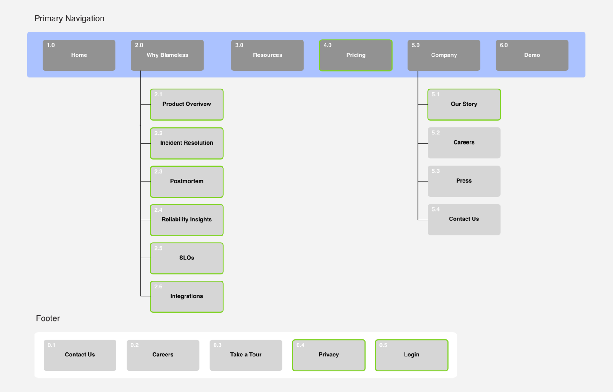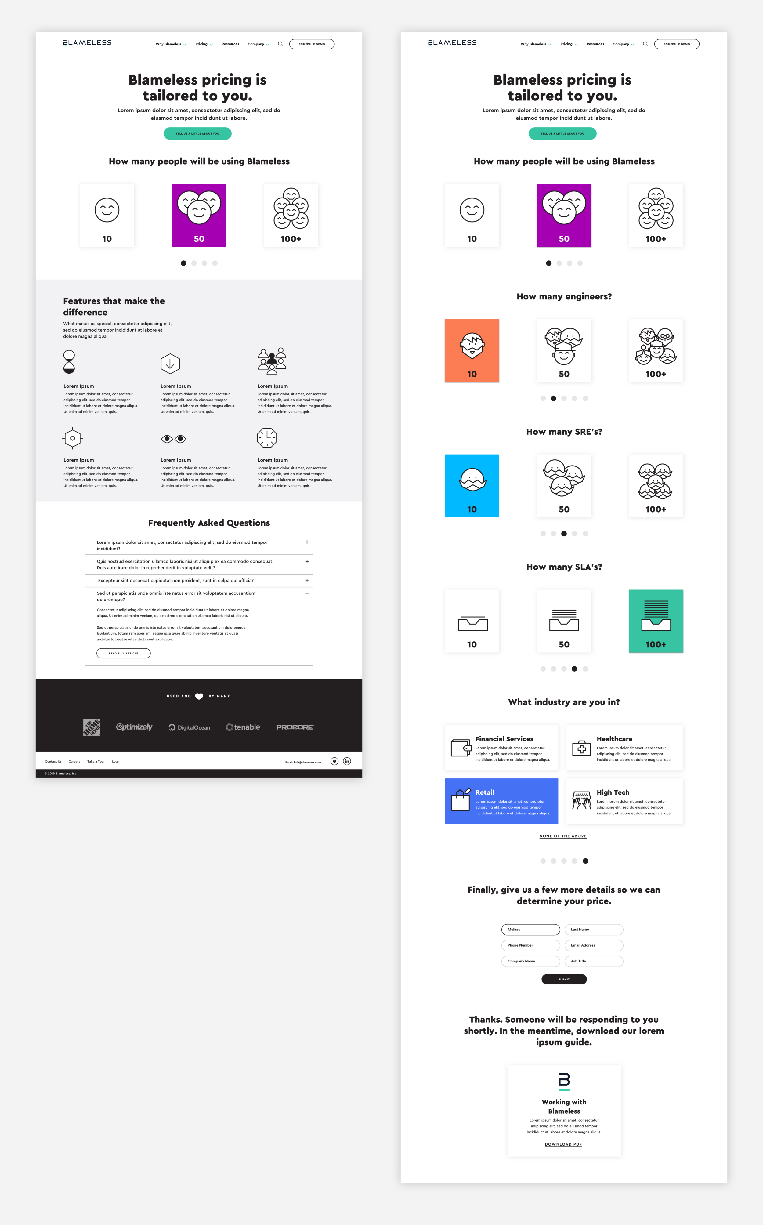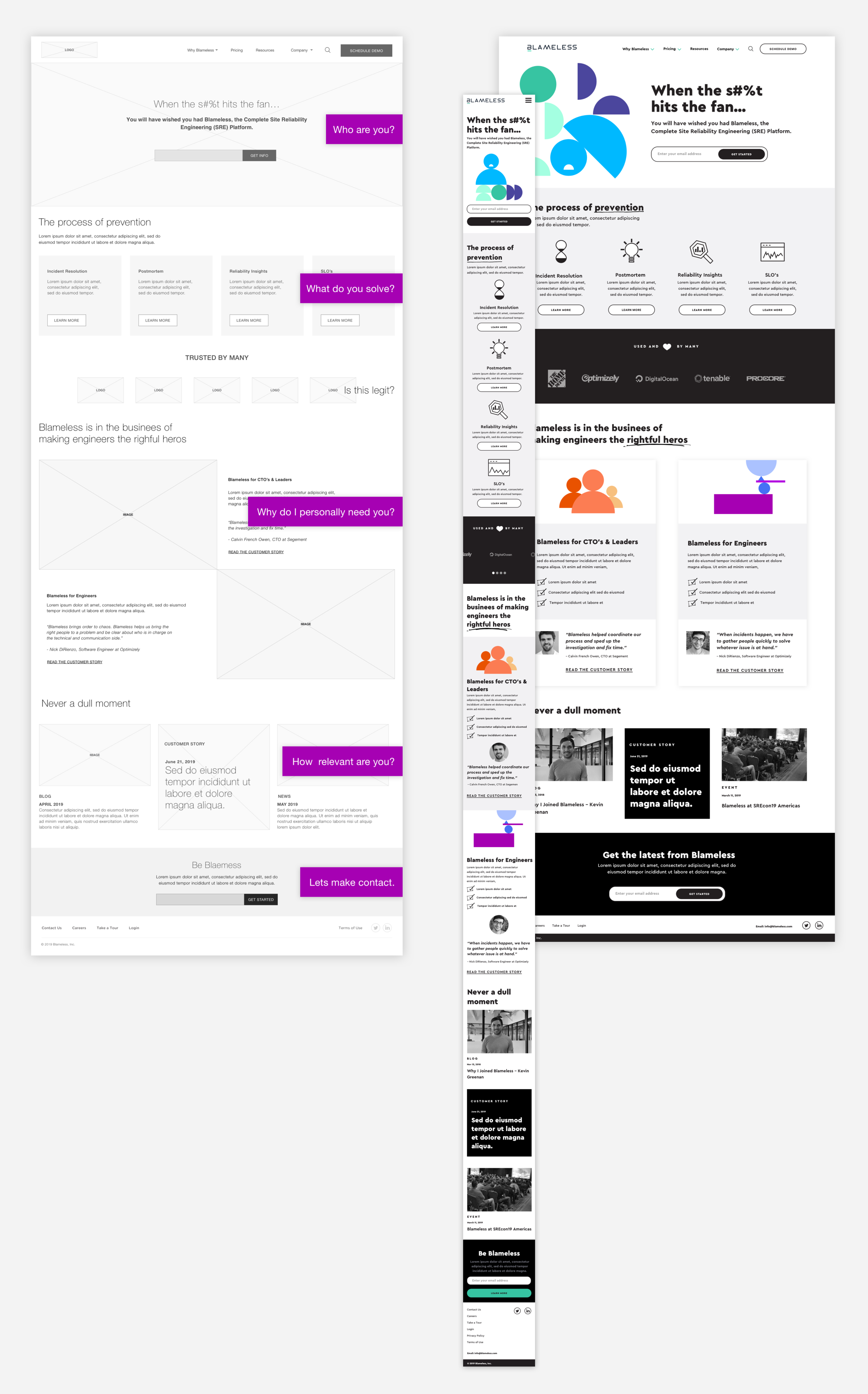 The homepage was intentionally organized to tell the complete story of Blameless, engaging the user by addressing their needs and closing with the opportunity to connect.
